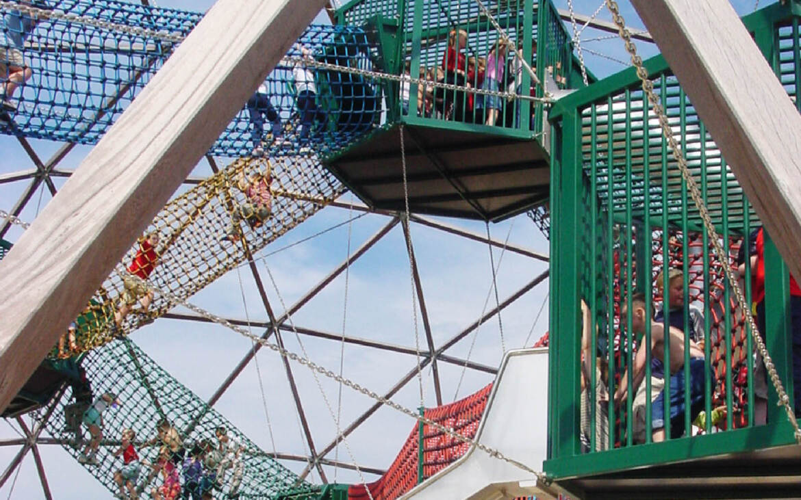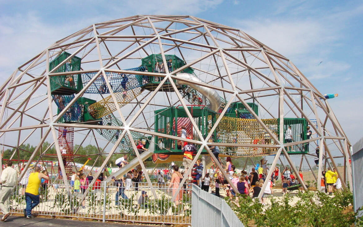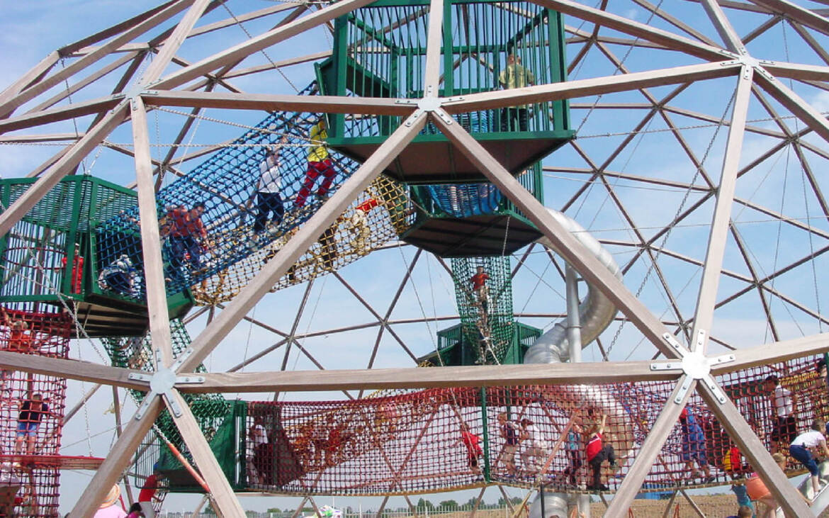 PlayWorld is een zeer avontuurlijk speelparadijs met junglebruggen, netten-tunnels, touw-ladders, glijbanen en tarzantouwen in het Hengrove park in Bristol. De speelattributen hangen aan het koepeldak, wat een spannende ervaring tijdens het klimmen oplevert. De geodetische koepel met een diameter van 25 meter is samengesteld uit houten staven van Azobe. Onder de koepel kunnen kinderen zich op een veilige manier uitleven met spelen, klimmen, rennen en glijden.
