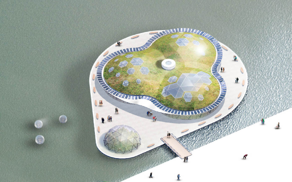 Floating Island is een innovatief ontwerp voor een drijvend paviljoen in het Weerwater van Almere voor de wereldtuinbouwtentoonstelling Floriade 2022. Het autarkische paviljoen bezit onder meer een hotel, congreszalen en een restaurant. Een kas zorgt daarbij voor de eigen voedselproductie. De opbouw van het paviljoen is volgens de principes van de circulaire economie. Er wordt gebruik gemaakt van gezonde, recyclebare en duurzame materialen met onder meer FSC hout voor de geodetische koepelconstructie. Het daklandschap wordt bekleedt met mossedum. Greening the city!